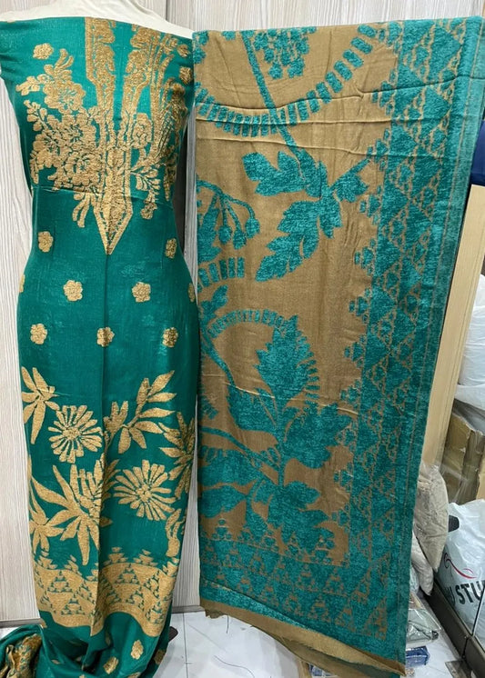 PERSIAN WOOL WINTER 3PC SUIT WITH PALACHI SHWAL (Light Ferozi)
