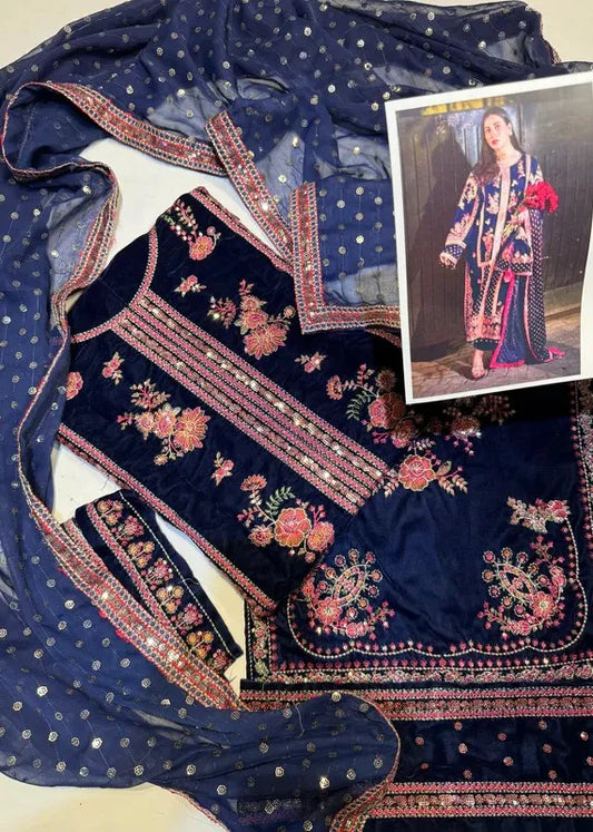 PERSIAN WOOL WINTER PRINTED 3PC SUIT (Dark Blue)
