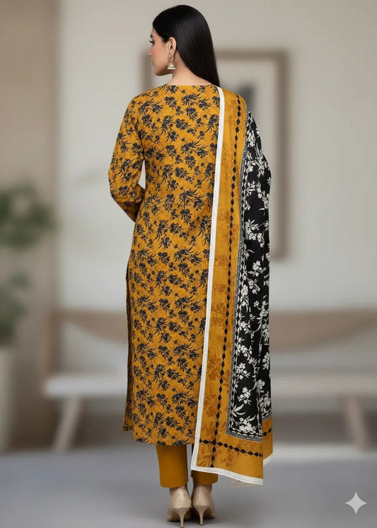 PERSIAN WOOL WINTER 3PC SUIT WITH PALACHI SHWAL (MUSTERED) PSD-01