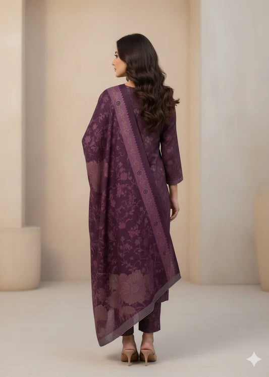 PERSIAN WOOL WINTER PRINTED 3PC SUIT (Purple Color Nw)