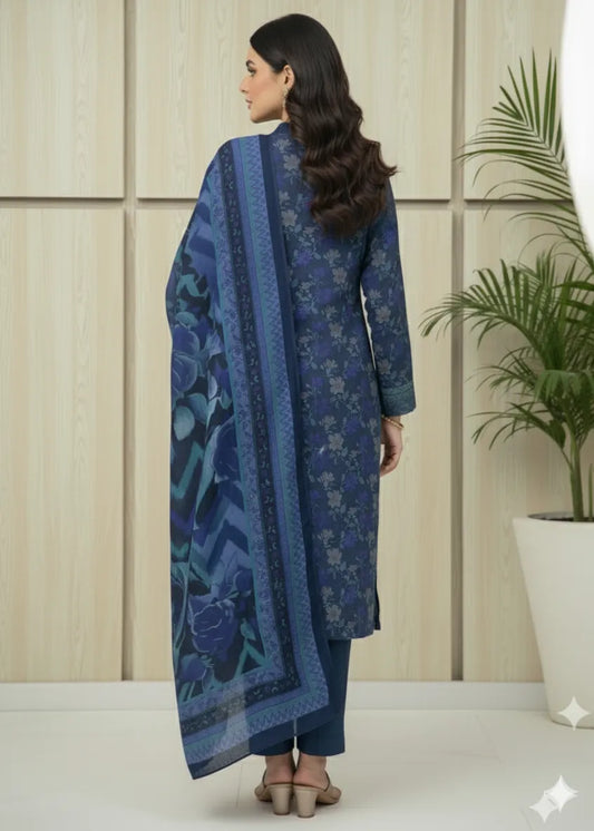PERSIAN WOOL WINTER PRINTED 3PC SUIT (Dark Blue)
