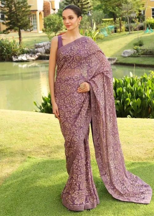 EMBROIDERED & HAND EMBELLISHED SAREE CHIFFON