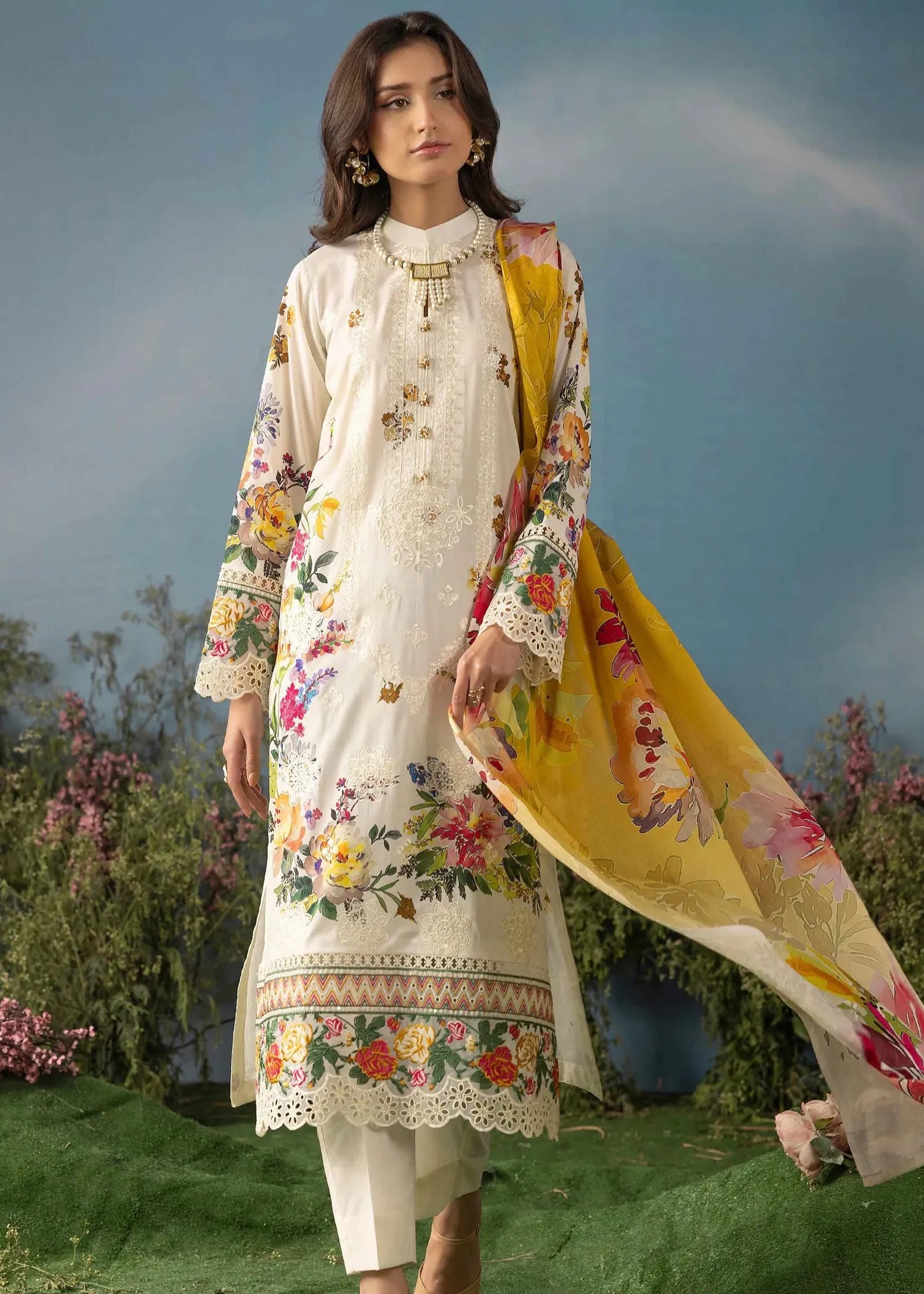 • Printed Lawn Embroided With Lawn Viol Printed Dupatta