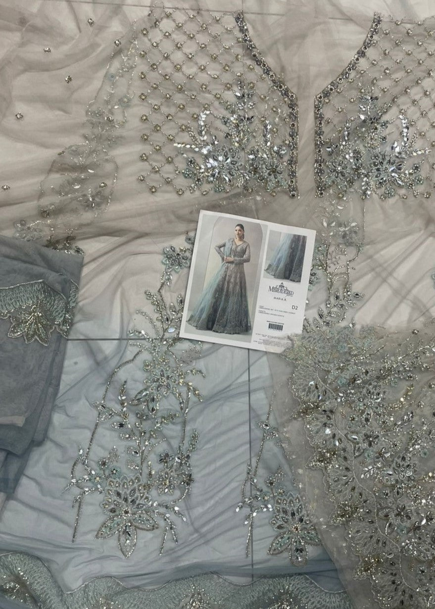 EMBROIDERED NET WITH HAND EMBELLISHMENT