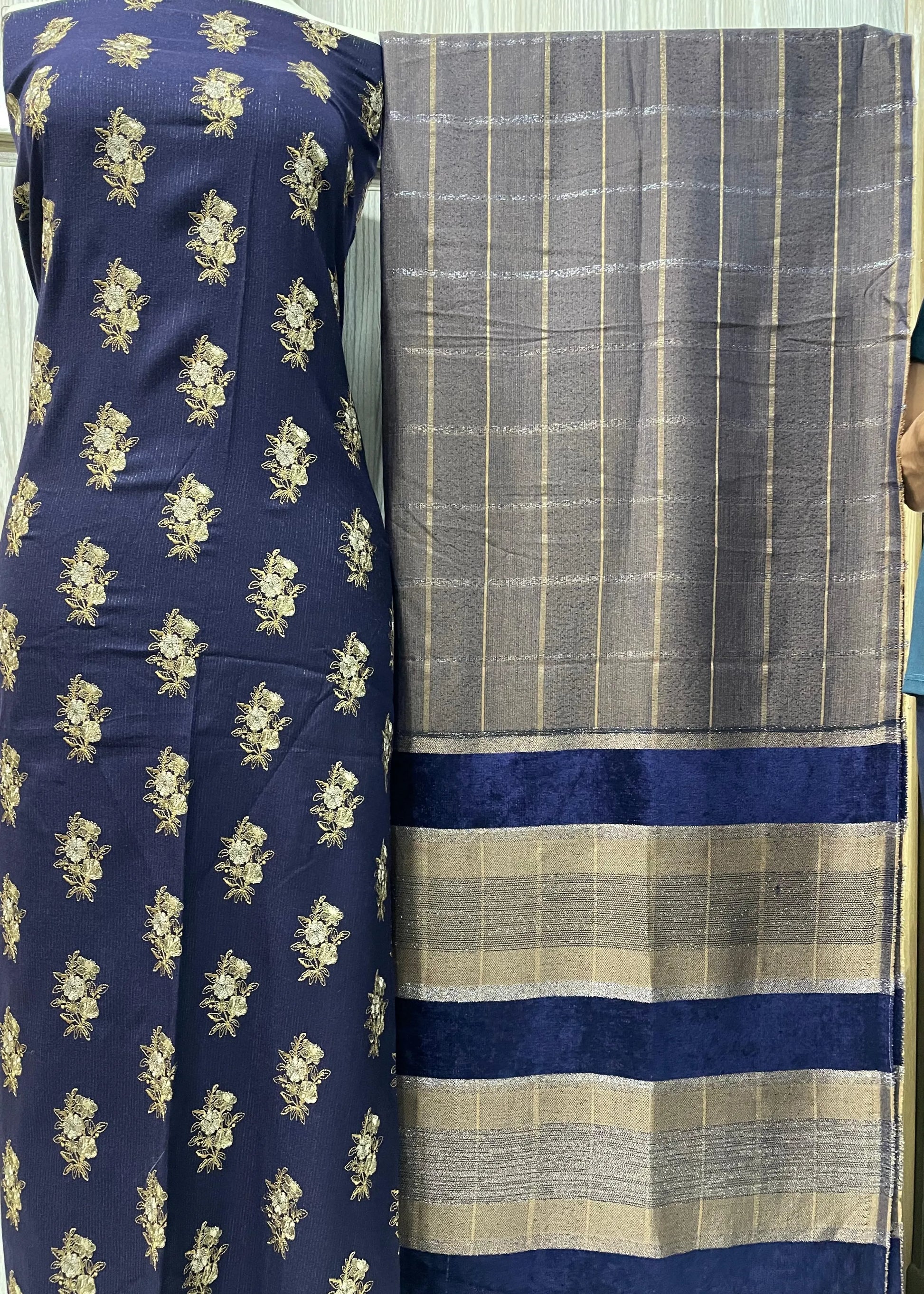 PERSIAN WOOL EMBROIDED WINTER 3PC SUIT WITH PALACHI SHWAL (Blue) PED-04