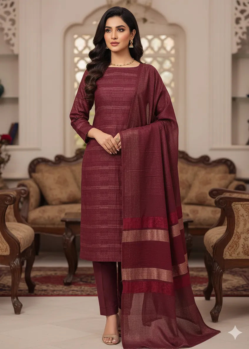 PERSIAN WOOL WINTER PRINTED 3PC SUIT (Maroon)