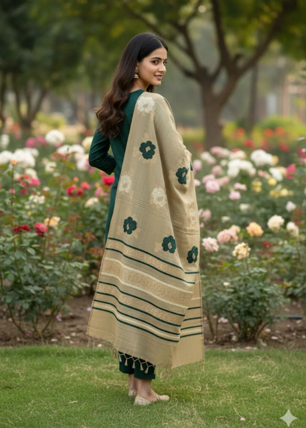 PERSIAN WOOL WINTER PRINTED 3PC SUIT WITH SWATI SHWAL (Green)